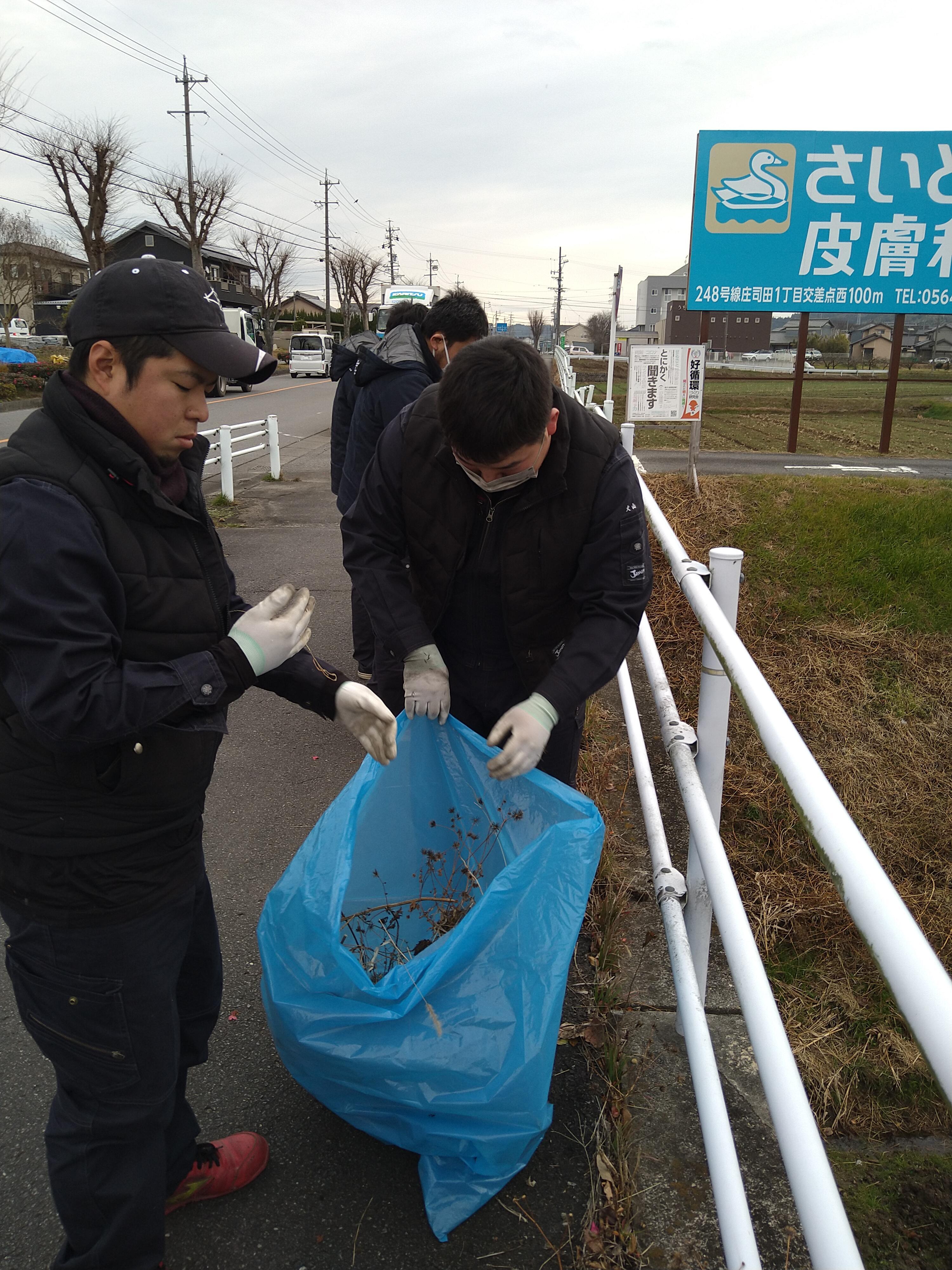 2023年1月16日 地域貢献の一環として、クリーン活動を行いました。23名が参加し、沿道の除草やたばこの吸い殻、空き缶などのごみ拾いを重点的に行い、地域環境の保全向上や共生協働による活力ある地域社会づくりに貢献しました。