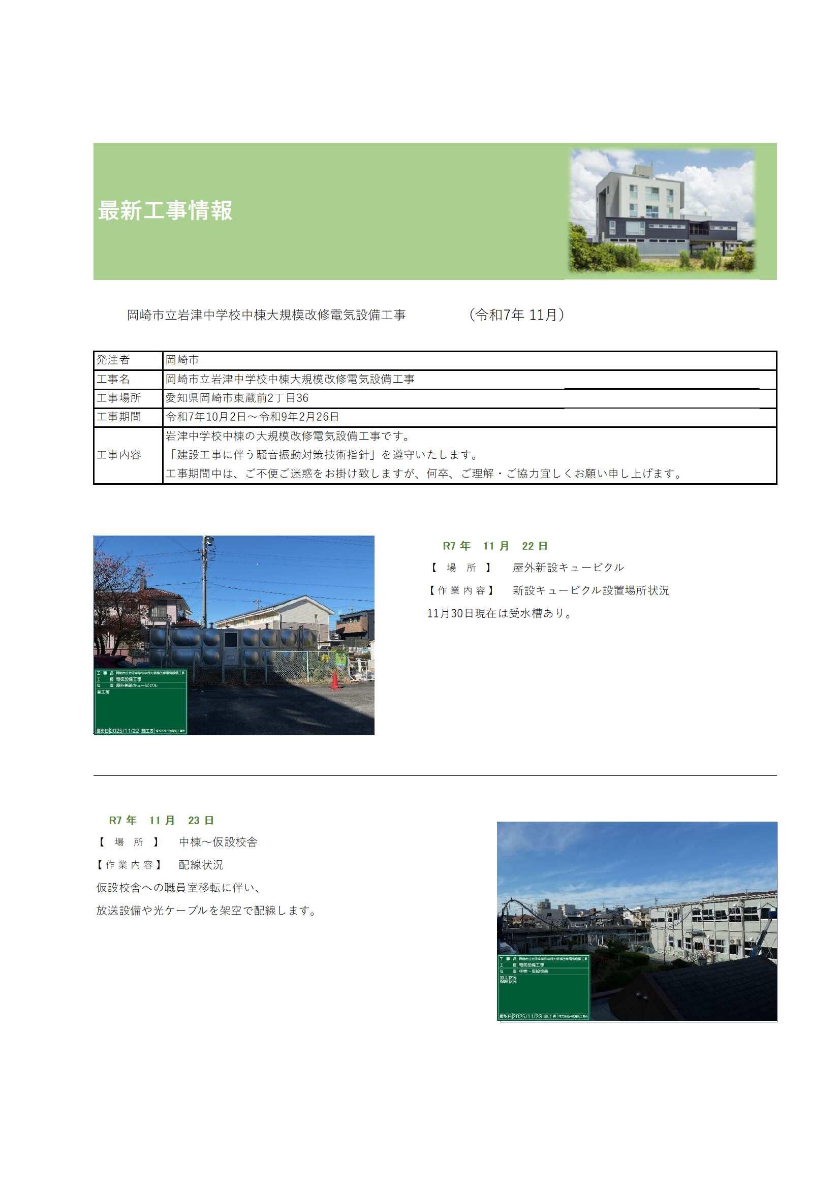岡崎市立岩津中学校中棟大規模改修電気設備工事